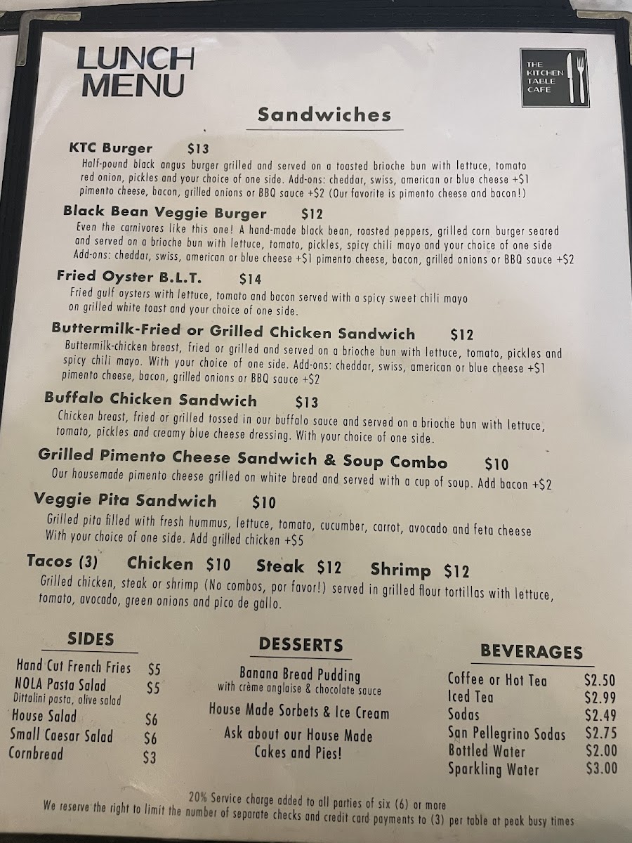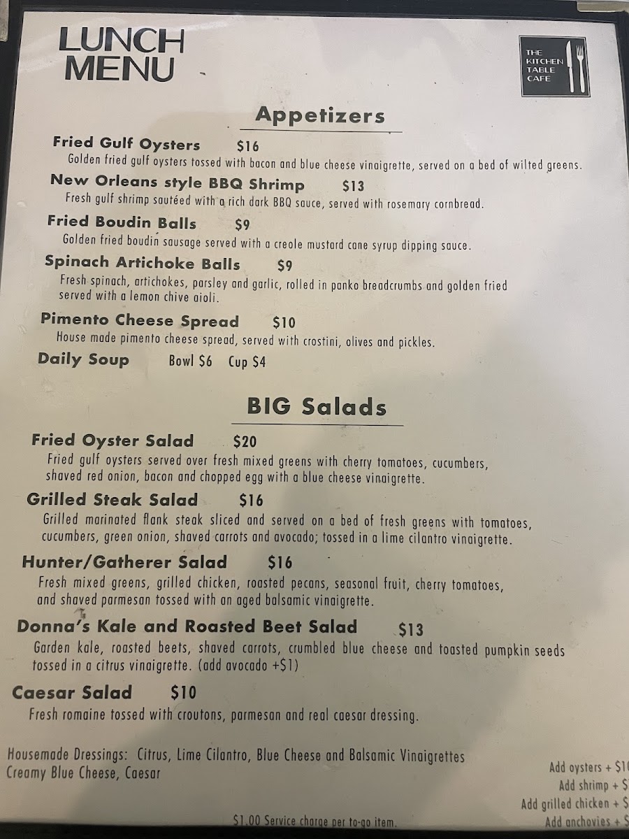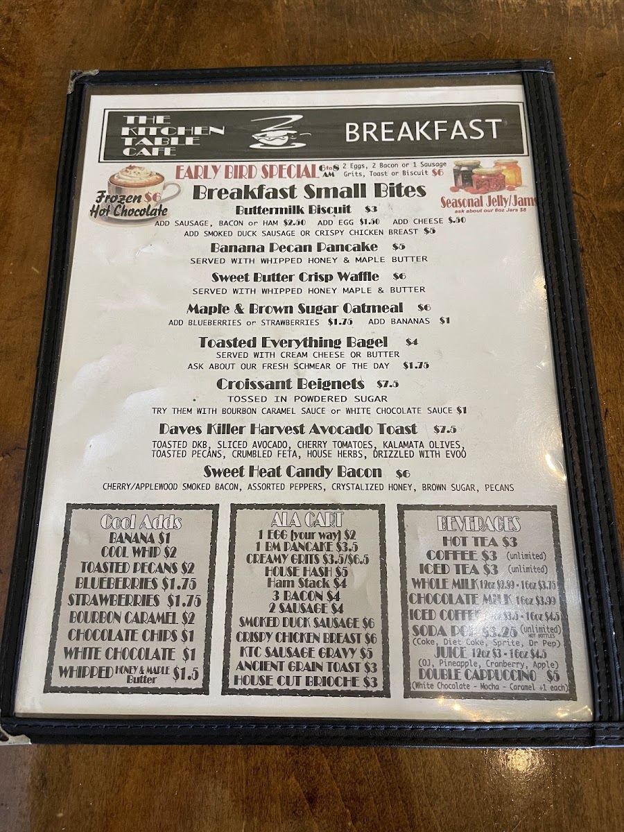 Kitchen Table Cafe Menu