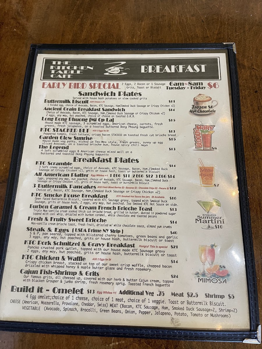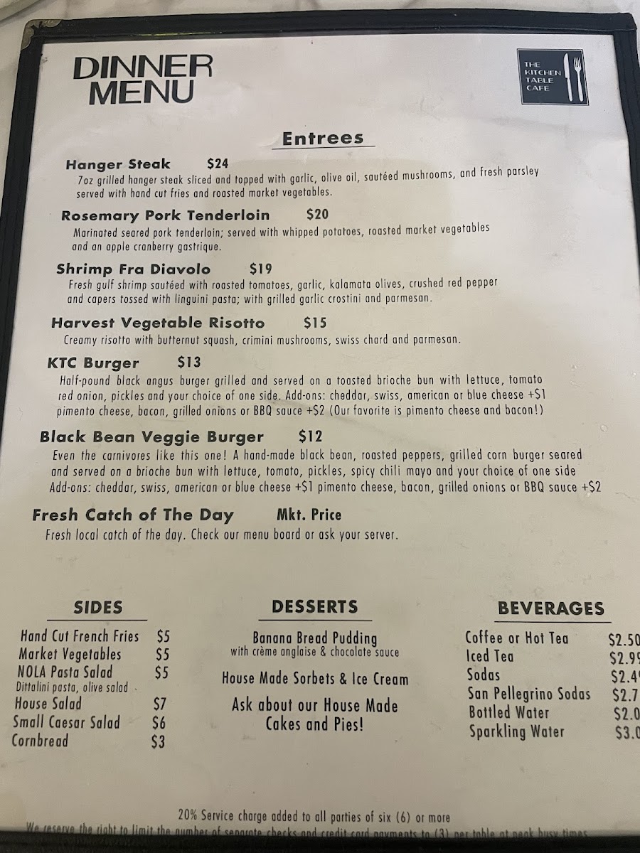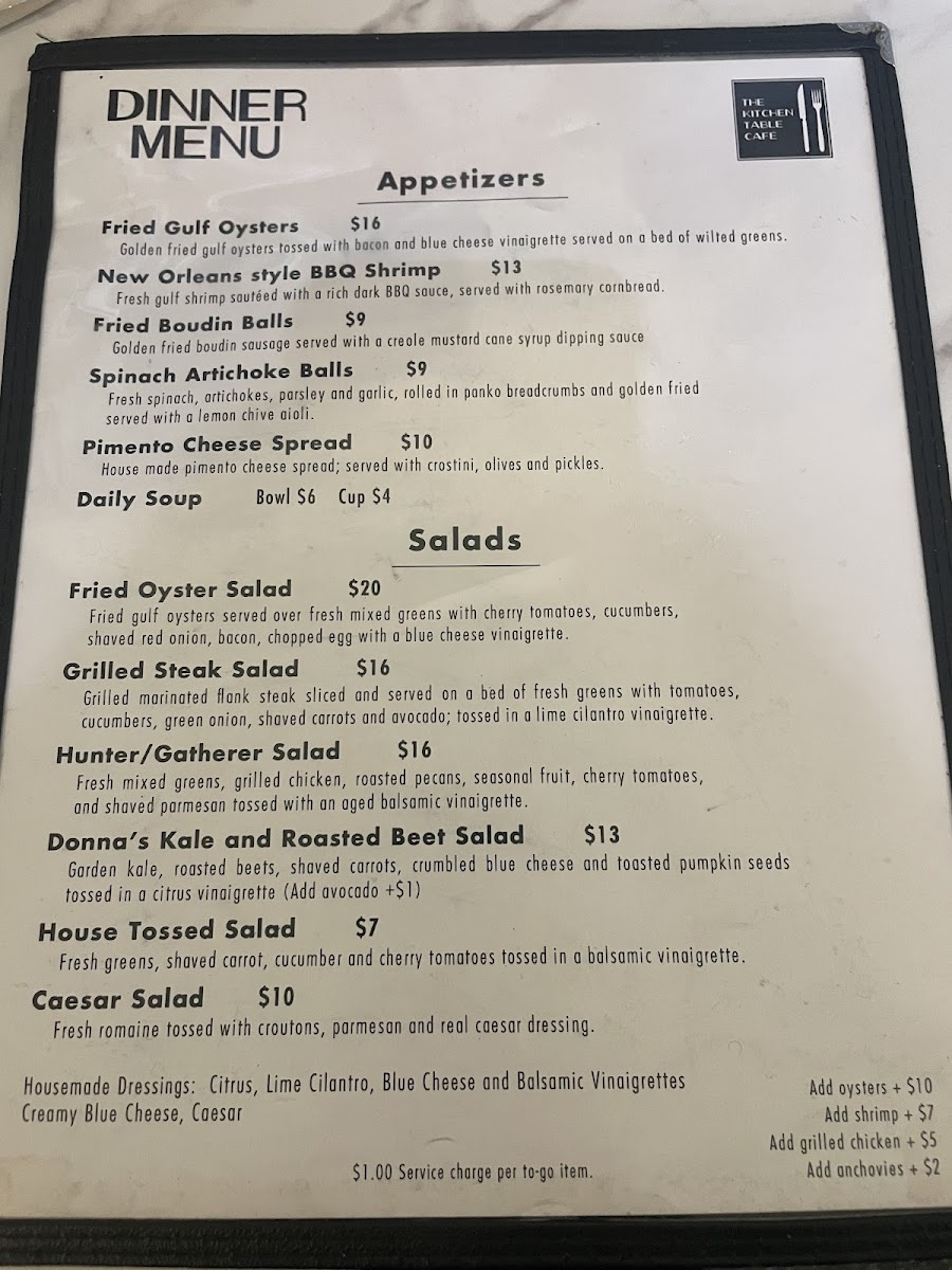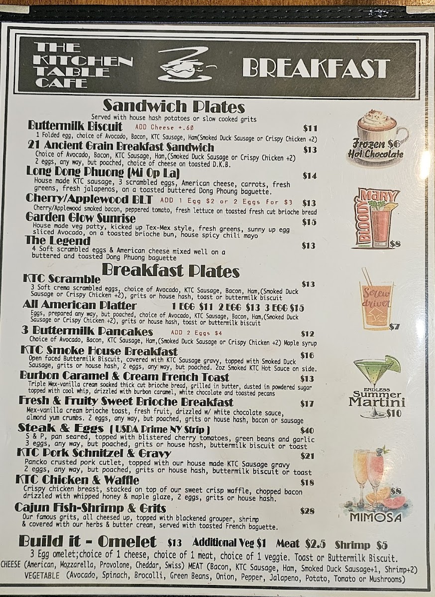 Kitchen Table Cafe Menu