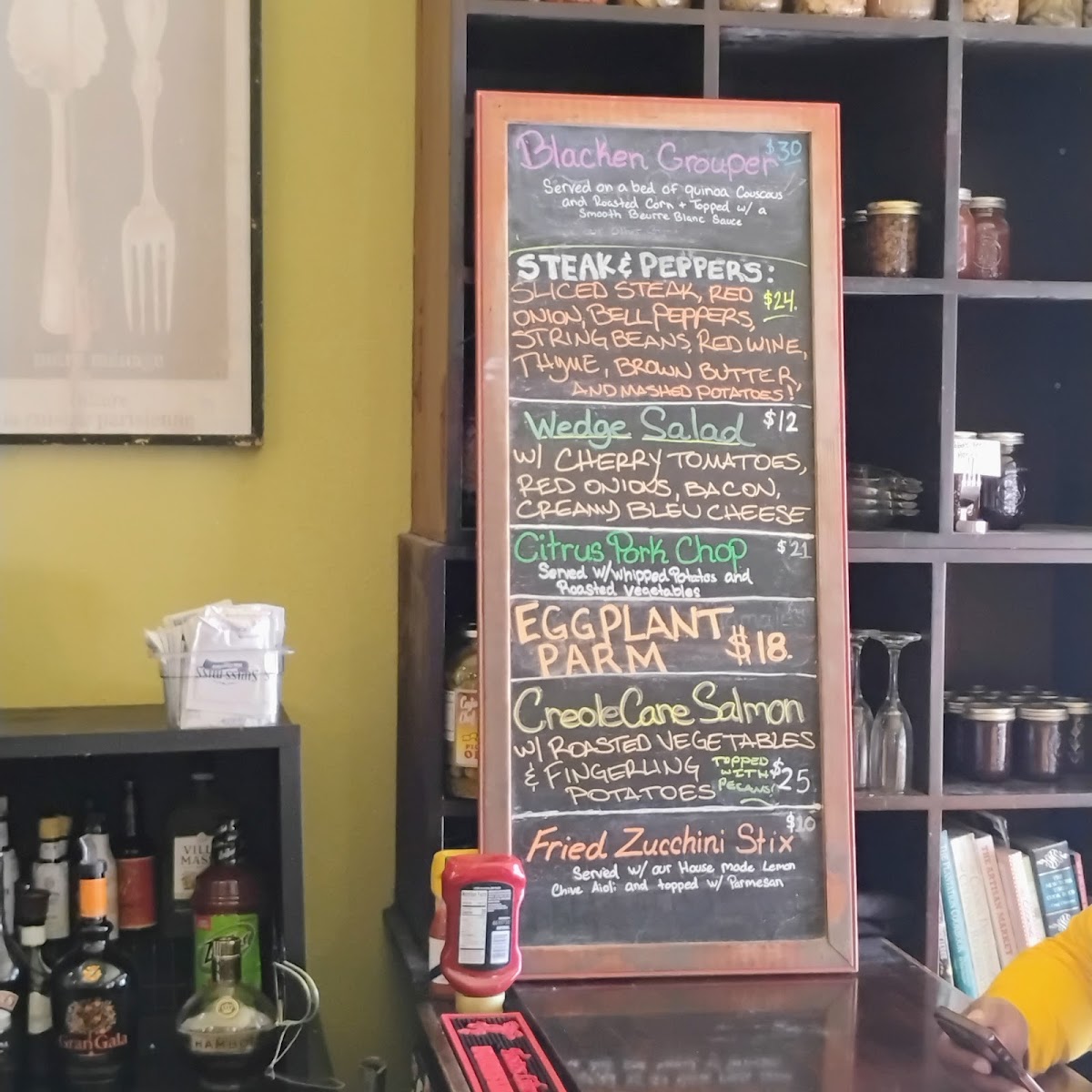 Breakfast items, including hearty pancakes with homemade honey butter and shrimp and grits, make the morning feel slow and satisfying. At lunch and dinner, house specialties like the skirt steak with zucchini and various seafood dishes invite a relaxed, neighborhood vibe that's perfect for enjoying either at the bar or a cozy table.